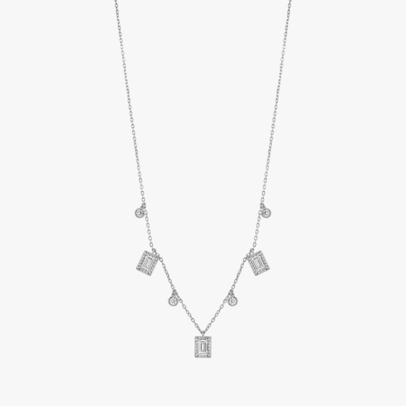 سلسلة بحجر مربع وأحجار متدلية ، تشوكر فضة