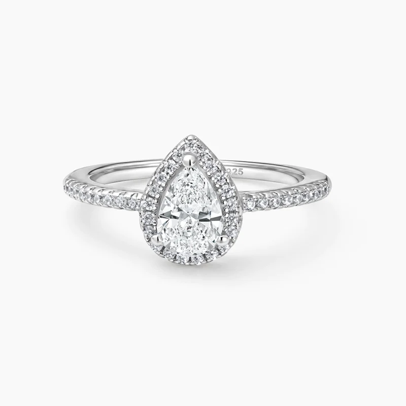 خاتم فضة دمعة تصميم هالو