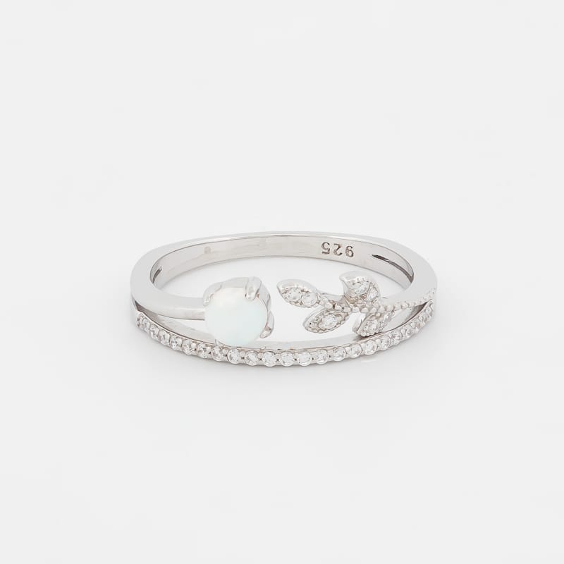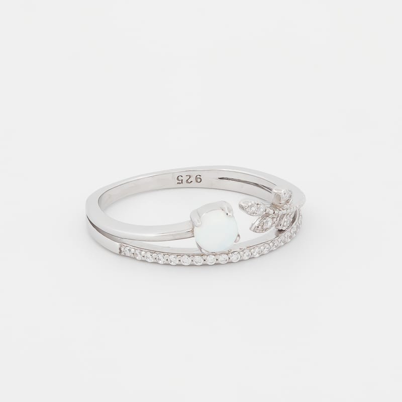 خاتم فضة سنثتك أوبال مع نزلة ورق شجر