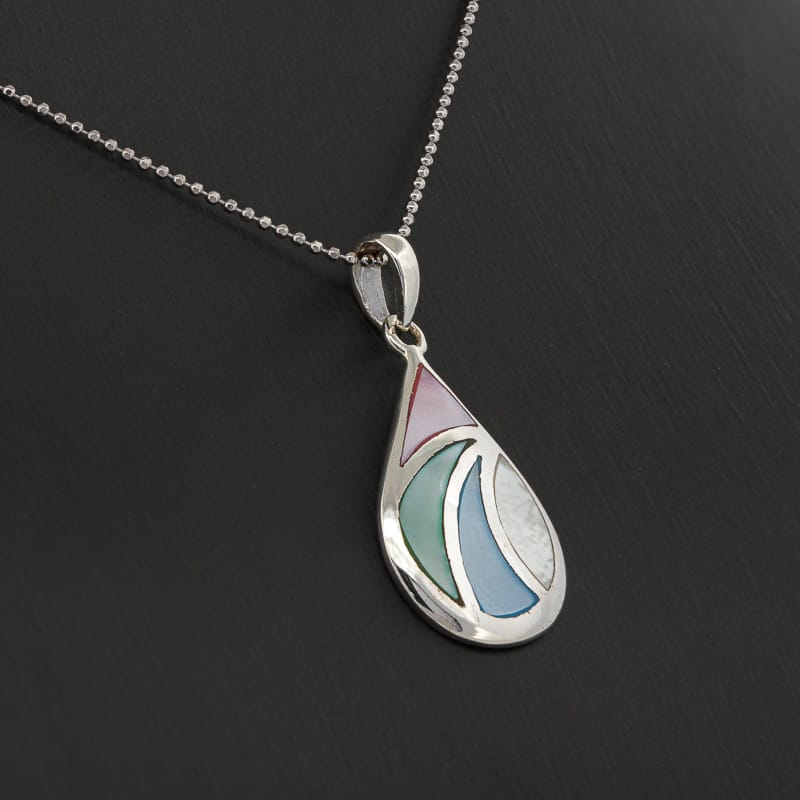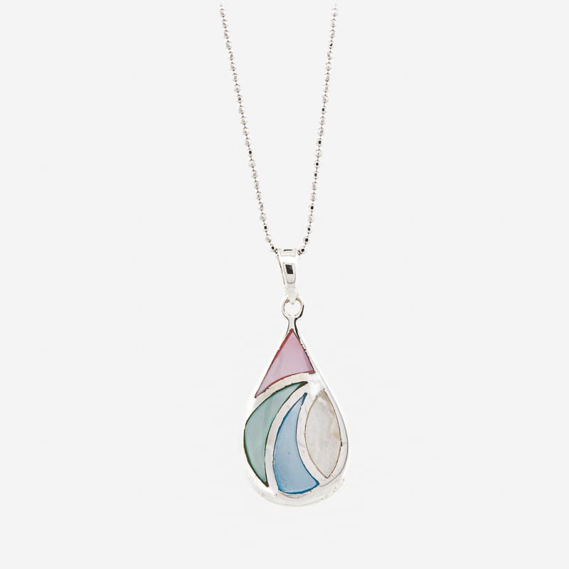 صدف ملون شكل دمعة ,تعليقة فضة