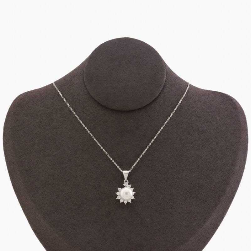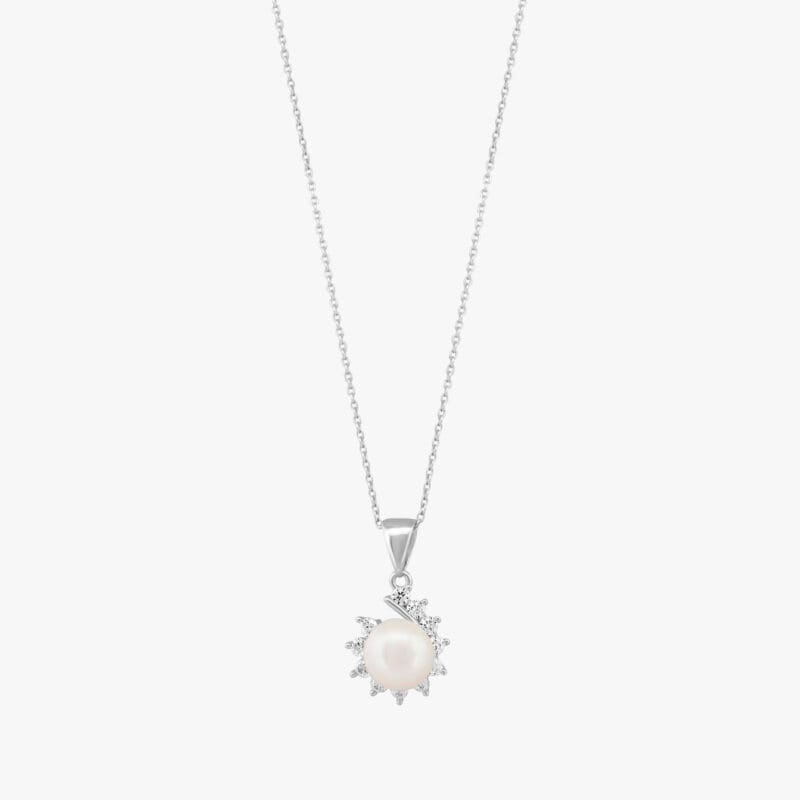 لؤلؤ أبيض مع ماركيز ، تعليقة وسلسال فضة