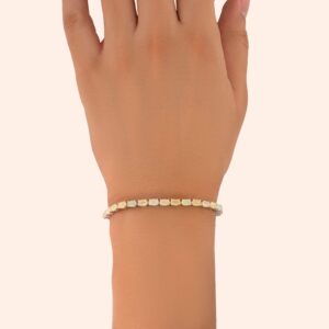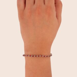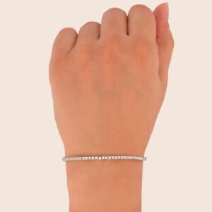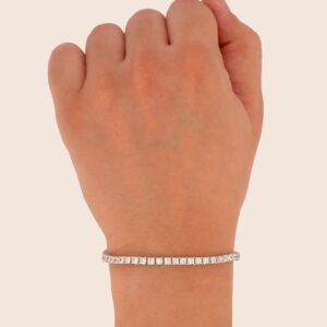 أسوارة تنس فضة عيار 925 مرصّعة بأحجار الكالسيدون باللون الأخضر تضيف لمسة من الهدوء. تصميمها المتناسق يعكس توازنًا دقيقًا بين البريق والصفاء مع قفل مصك فضي آمن.