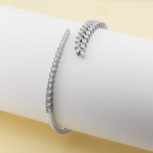 أسوارة فضة عيار 925 بتصميم موديلات الألماس مرصّعة بأحجار الزركون وعرق اللؤلؤ على شكل ورد.
