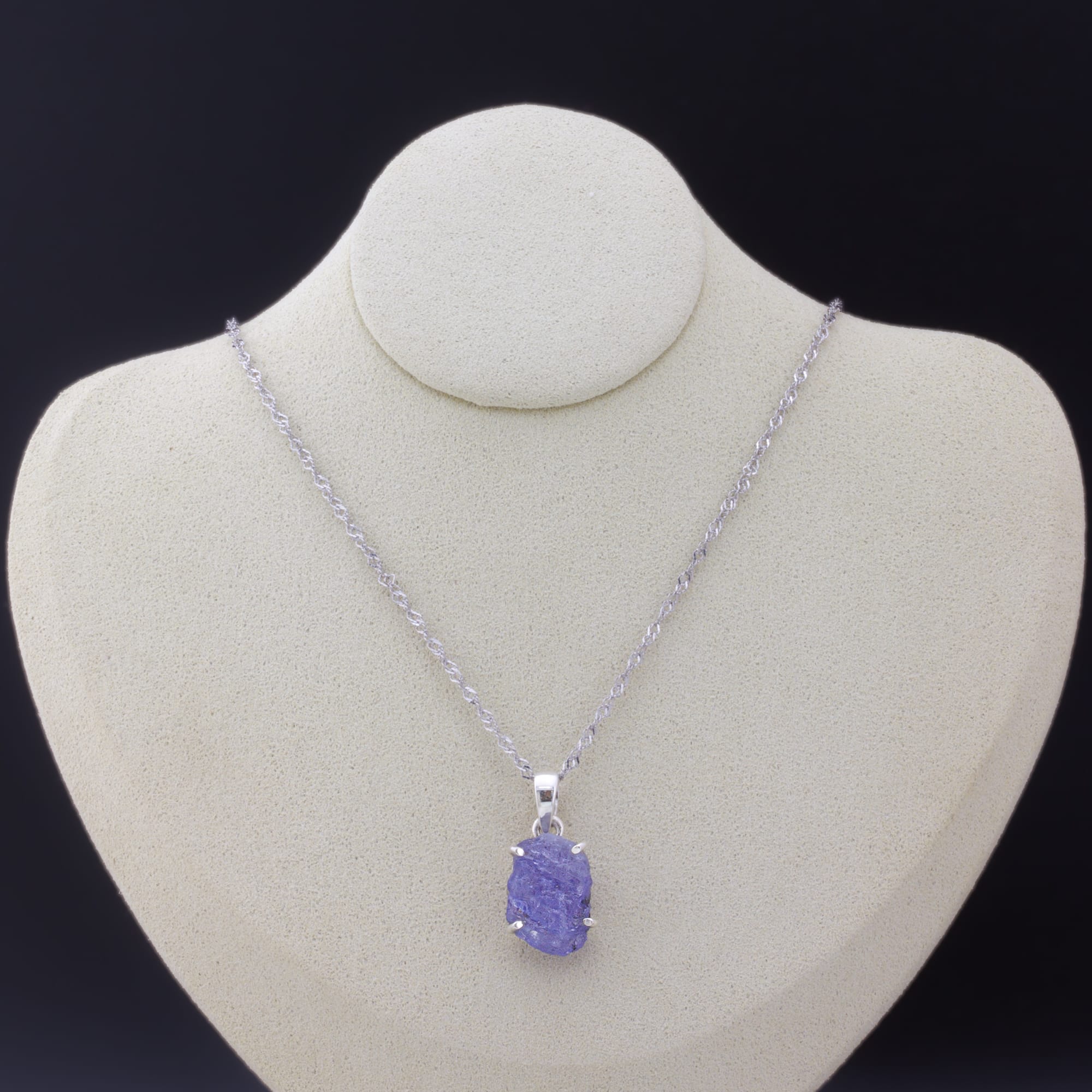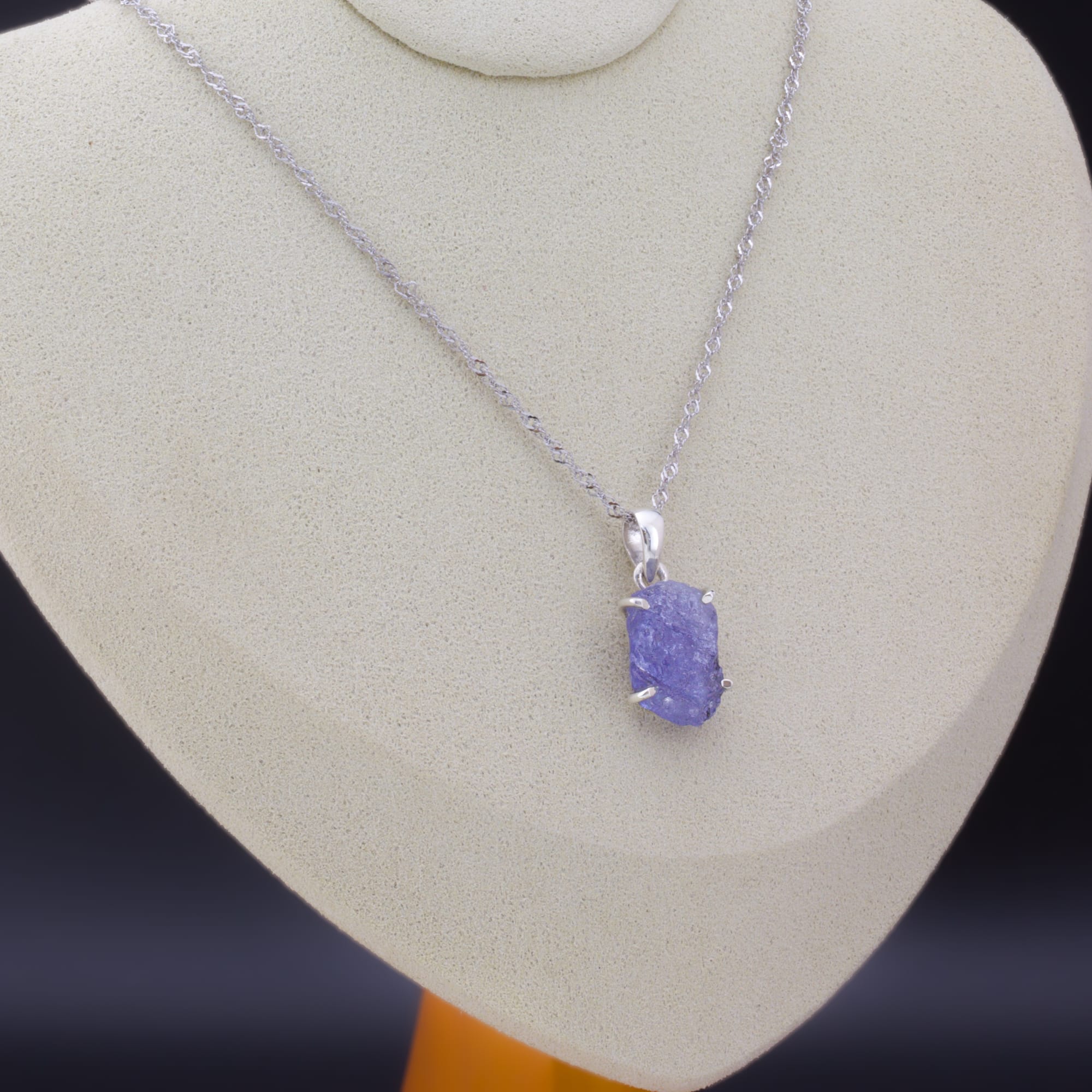 قلادة من الفضة الإسترلينية مرصعة بحجر التانزانيت الطبيعي الخام بلونه البنفسجي العميق.