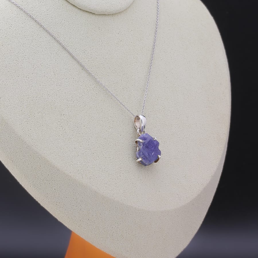 حجر التنزنايت الخام ، تعليقة وسلسال فضة