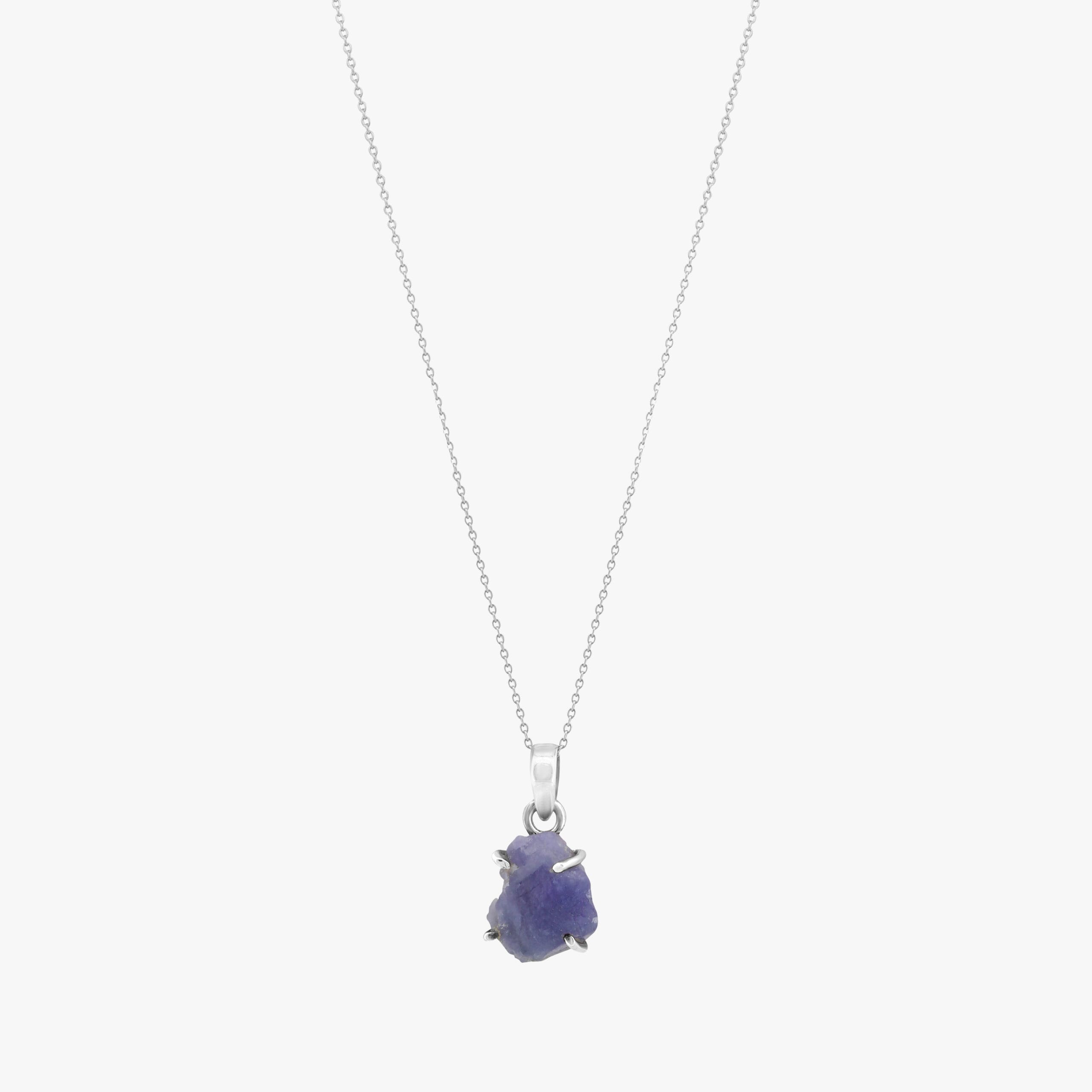 قلادة من الفضة الإسترلينية مرصعة بحجر التانزانيت الطبيعي الخام بلونه البنفسجي العميق.