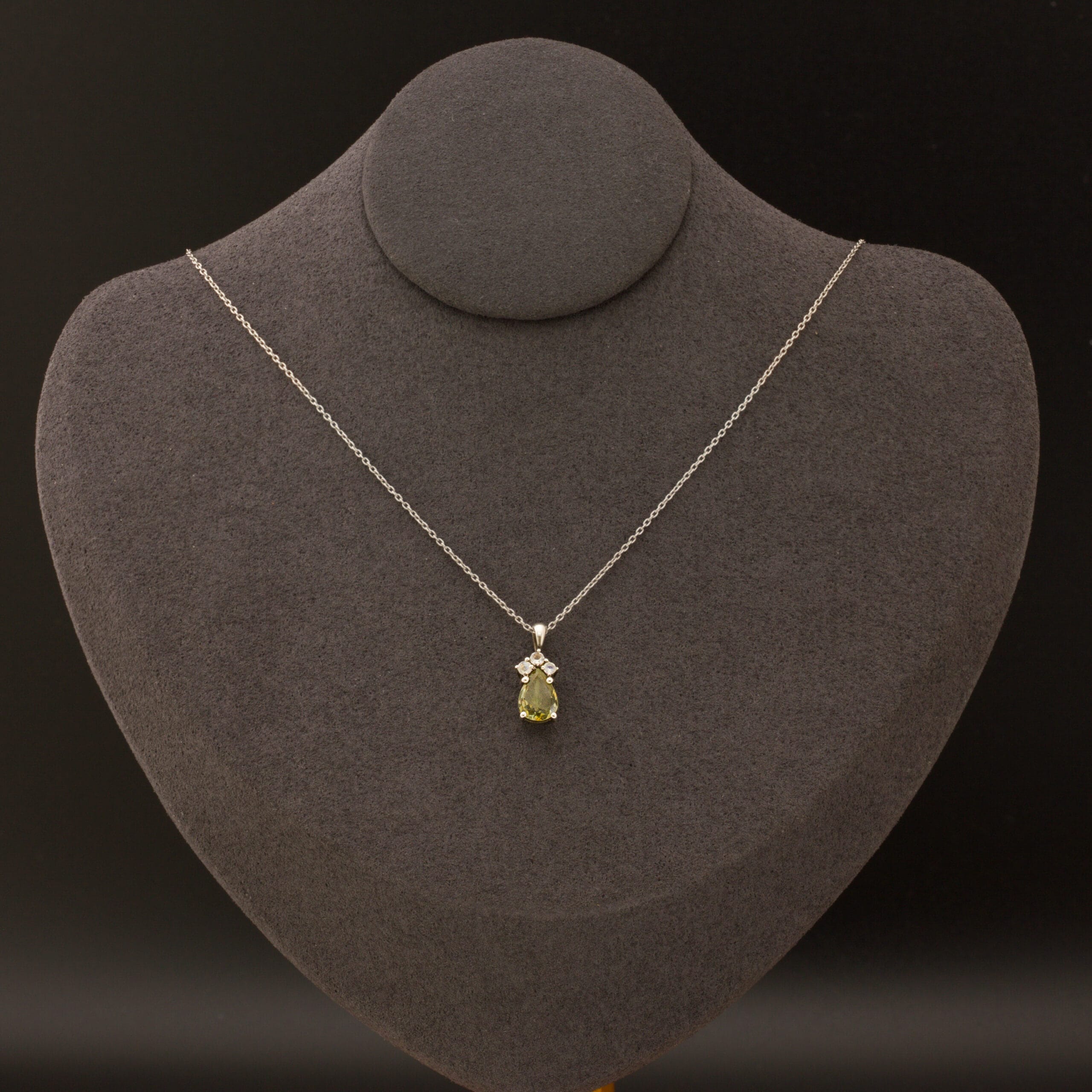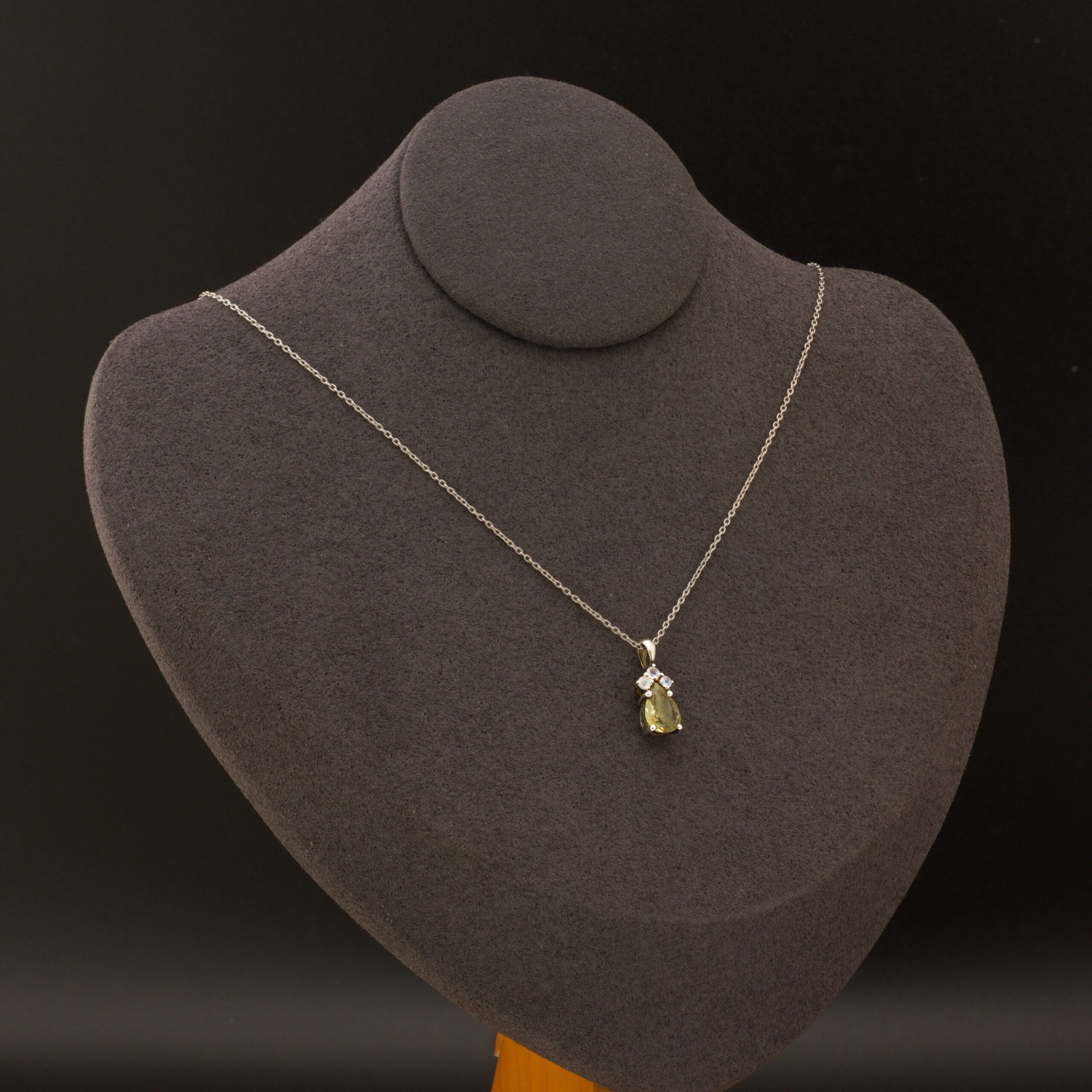 حجر التورمالين دمعة ، تعليقة وسلسال فضة