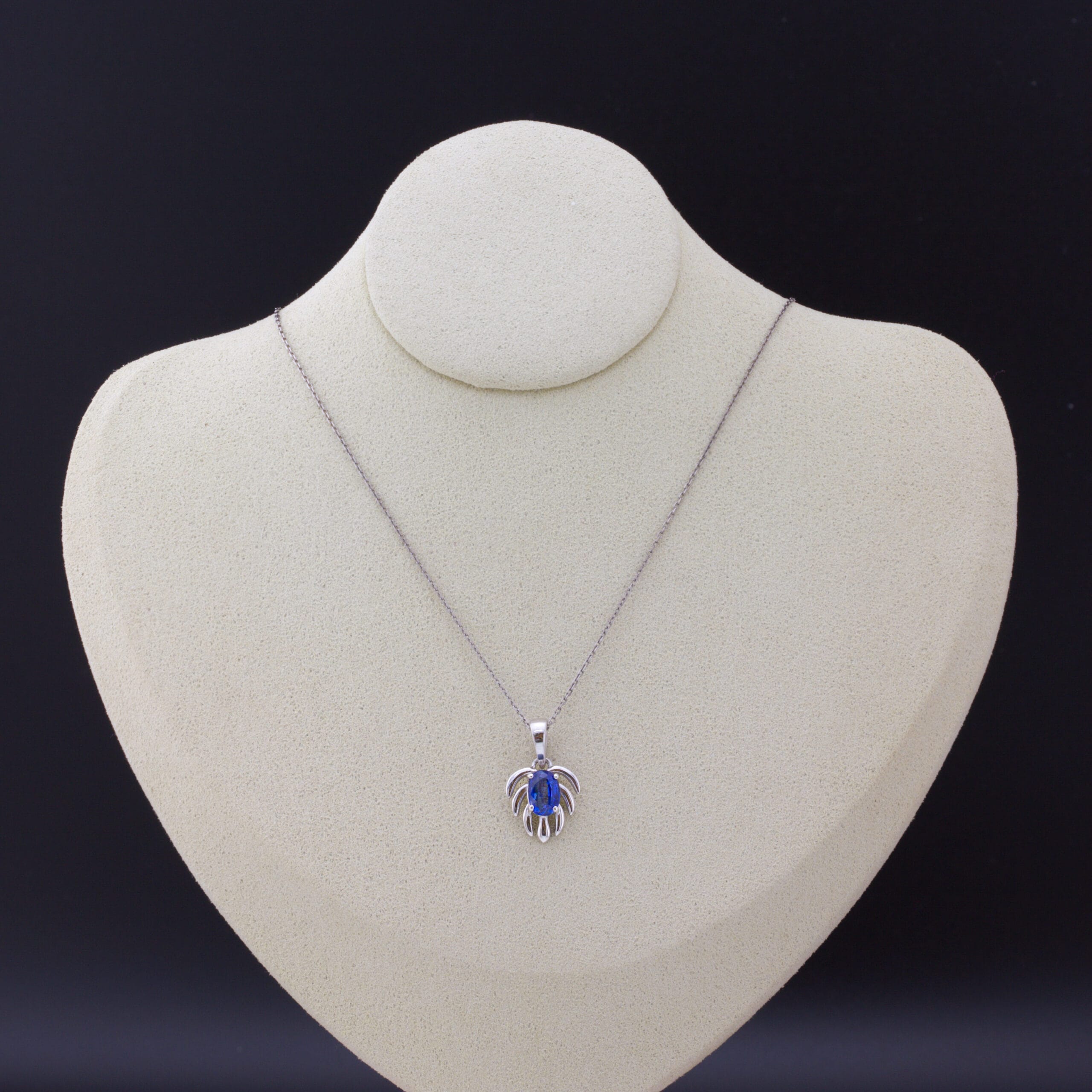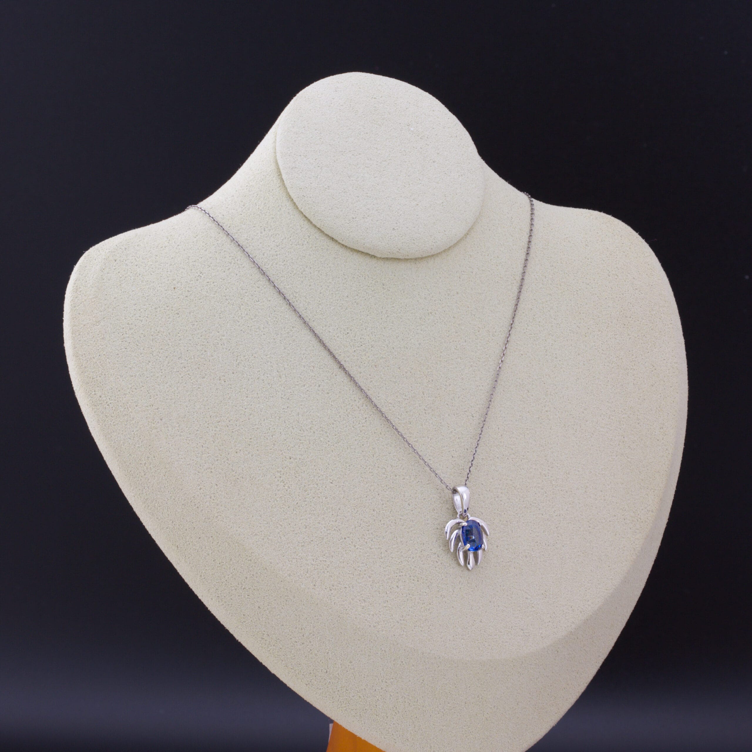 عقد فضة إسترليني عيار 925 بحجر كيانيت طبيعي أزرق بيضاوي وتصميم فريد يشبه النخلة العربية. خفيف وأنيق، مثالي للارتداء اليومي ويضفي لمسة راقية على أي إطلالة.
