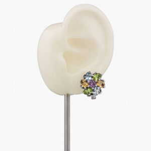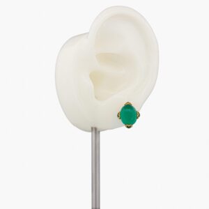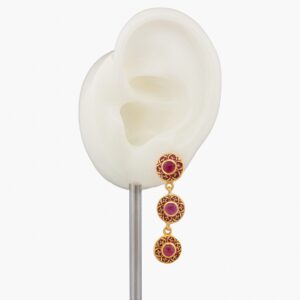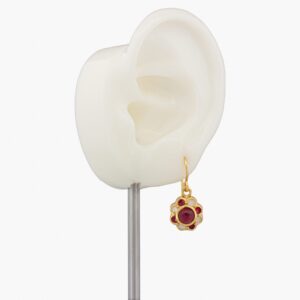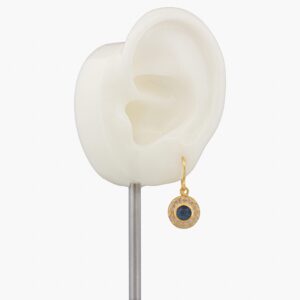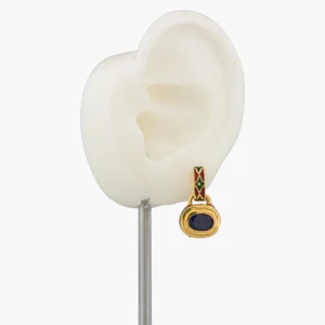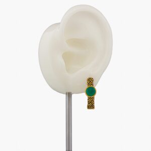 حلق أحجار كريمة فضة عيار 925 بتصميم هوب صغير مطلي باللون الذهبي، مرصع بـ 6 أحجار دائرية بتوزيع متناوب، وكل حجر داخل إطار ناعم يبرز اللون والتفصيل.