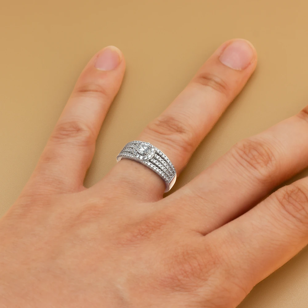 خاتم خطوبة فضة هالو عريض