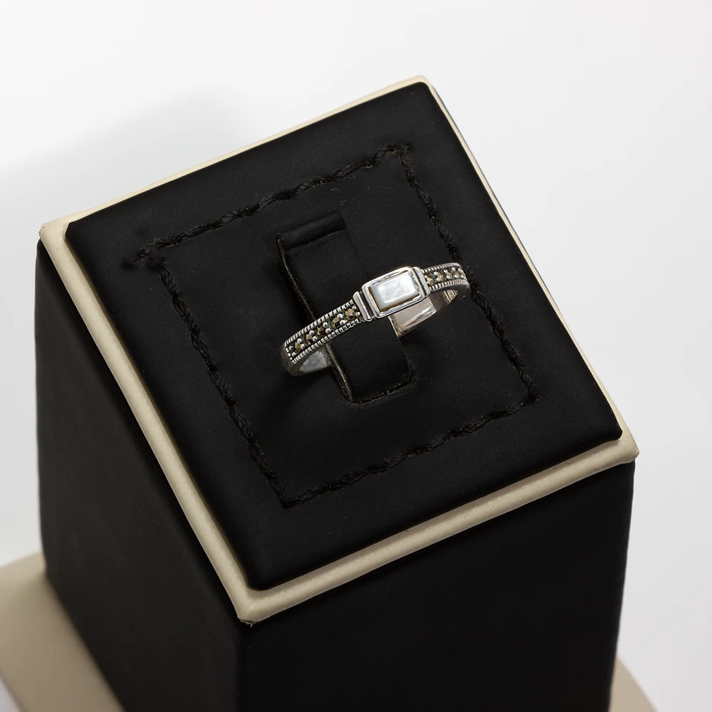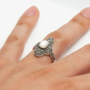 خاتم فضة الماركازيت بحجر الصدف الأبيض