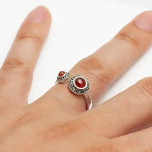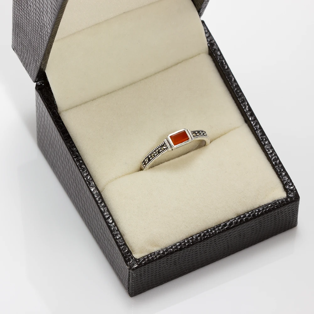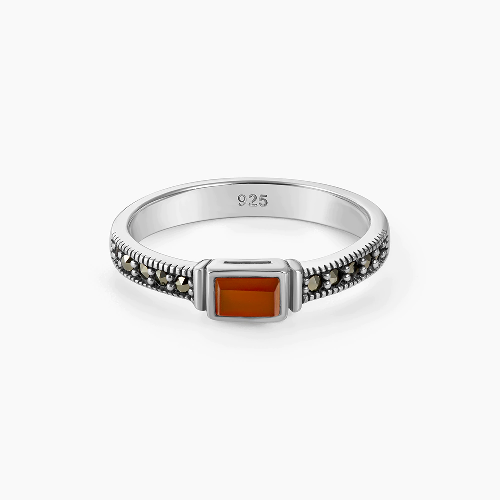 خاتم فضة الماركازيت بحجر الكارنليان