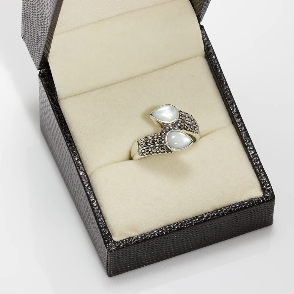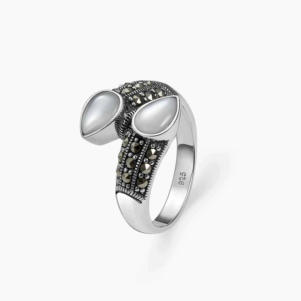 خاتم فضة الماركازيت مزدوج بحجر الصدف (دمعة)
