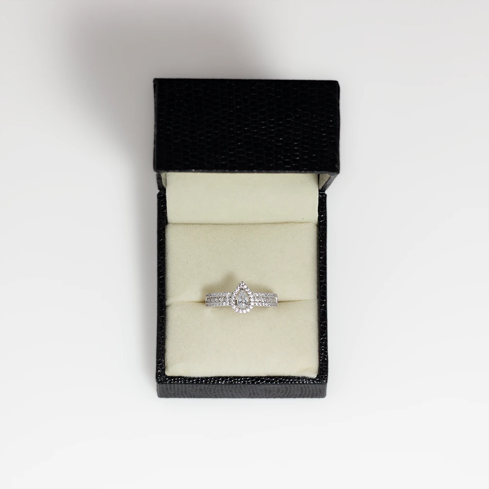 خاتم فضة دمعة تصميم هالو