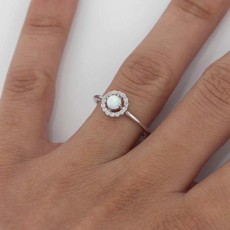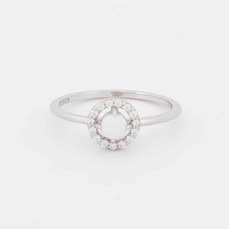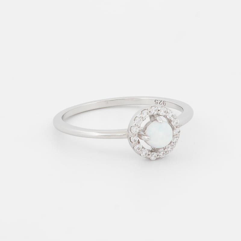 خاتم فضة كلاسيكي مع سنثتك أوبال