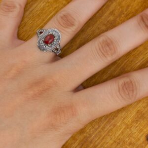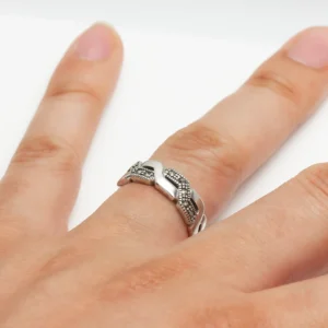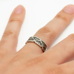 خاتم فضة ماركازيت بتصميم وردة والقمح