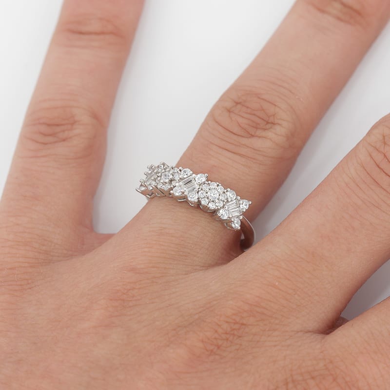 خاتم فضة هالف اتيرنتي شغل ألماس