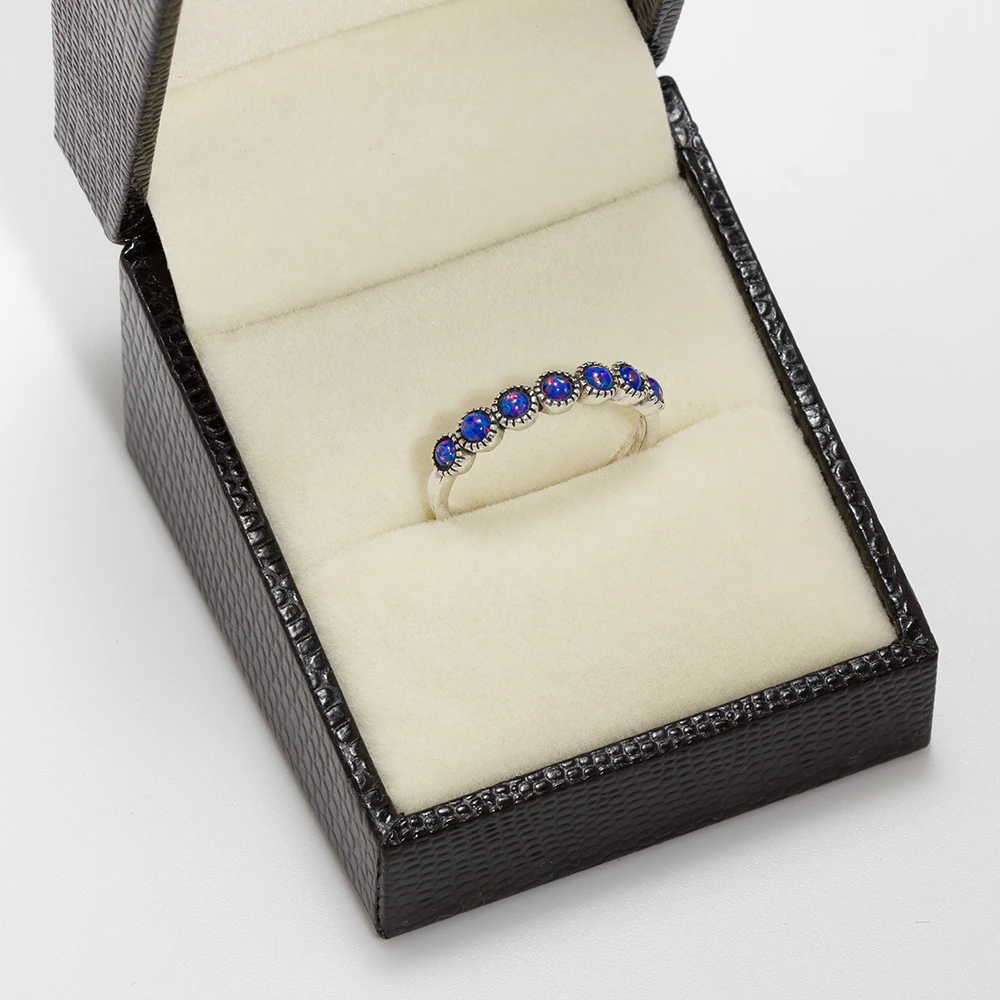 خاتم فضة هالف اتيرنيتي بأحجار الأوبال السنثتك