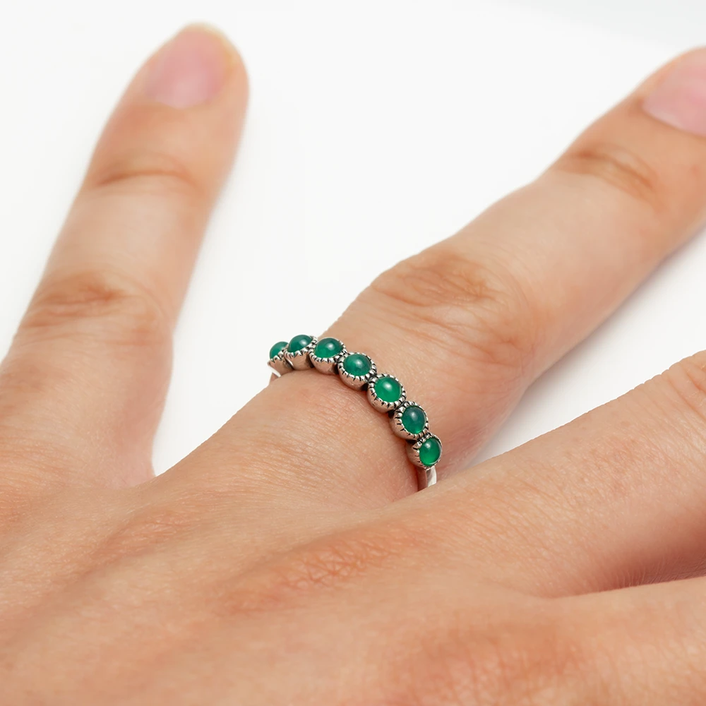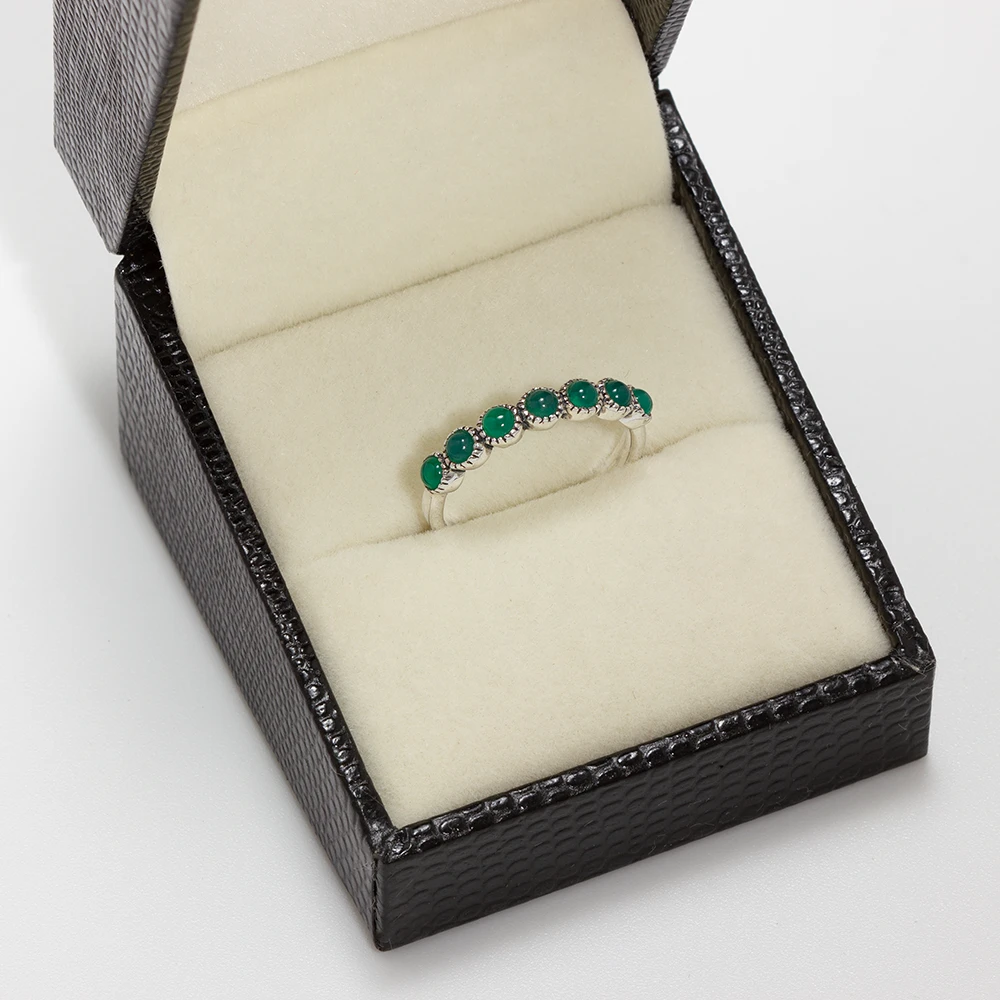 خاتم فضة هالف اتيرنيتي بأحجار الكالسيدون الأخضر