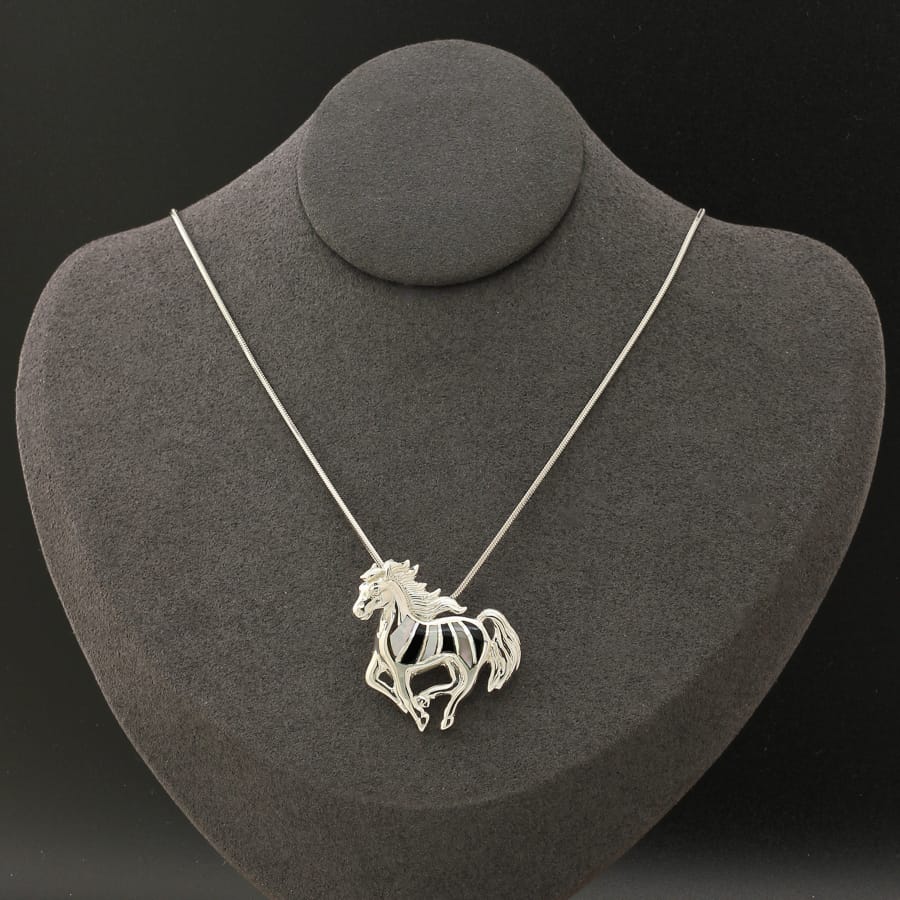 خيل (صدف أبيض وأسود) ، تعليقة وسلسال فضة