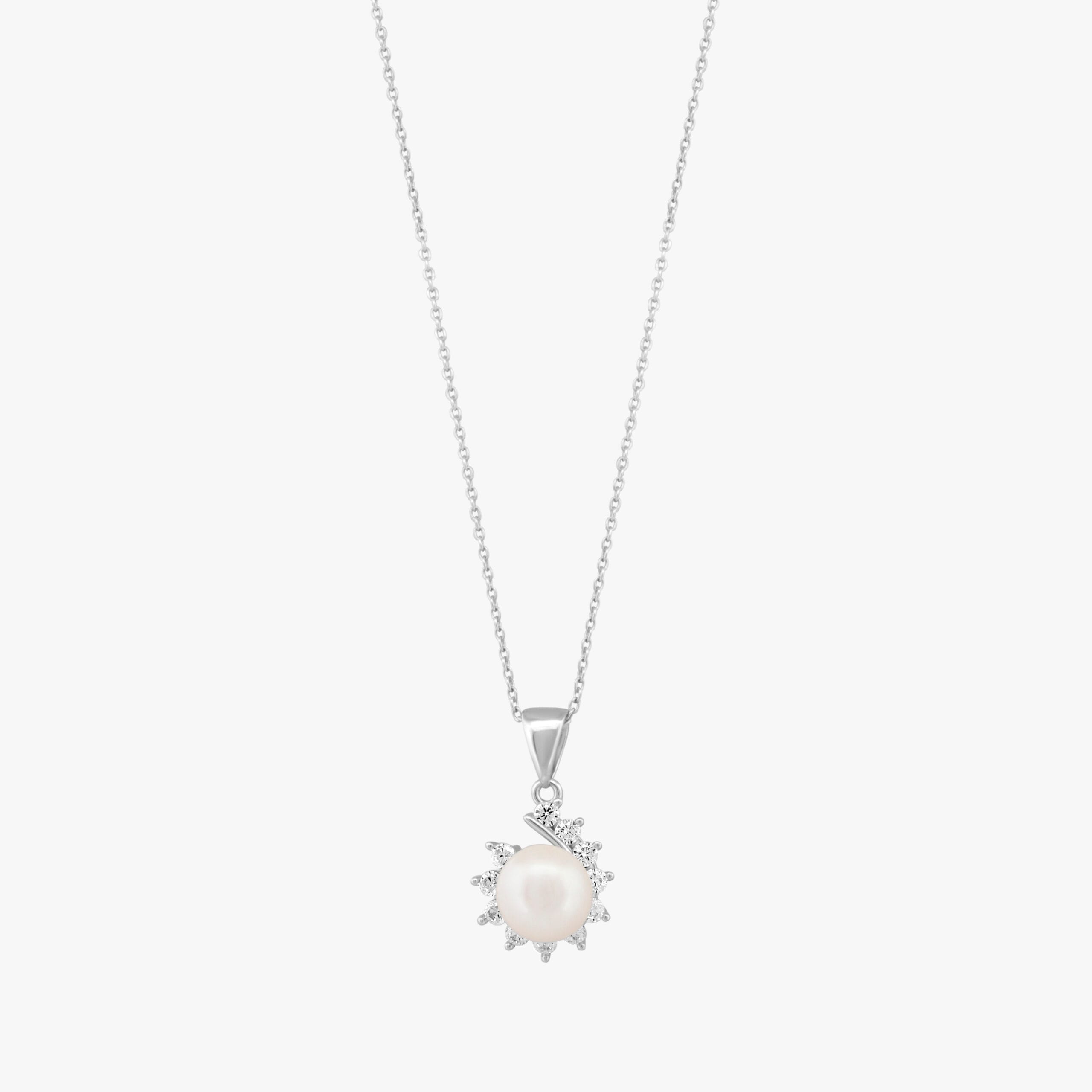 قلادة من الفضة الاسترلينية تتوسطها لؤلؤ بيضاء. العقد ذو تصميم مبتكر وفريد يجمع بين النعومة والجاذبية. مثالية لإضافة لمسة أناقة عصرية