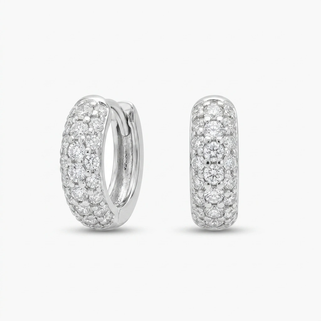حلق فضة دائري (هووب) ناعم المفضل للأغلبية كلبس يومي. مرصع بفصوص الزركون الناعمة على الواجهة لإطلالة بسيطة ومرتبة.
