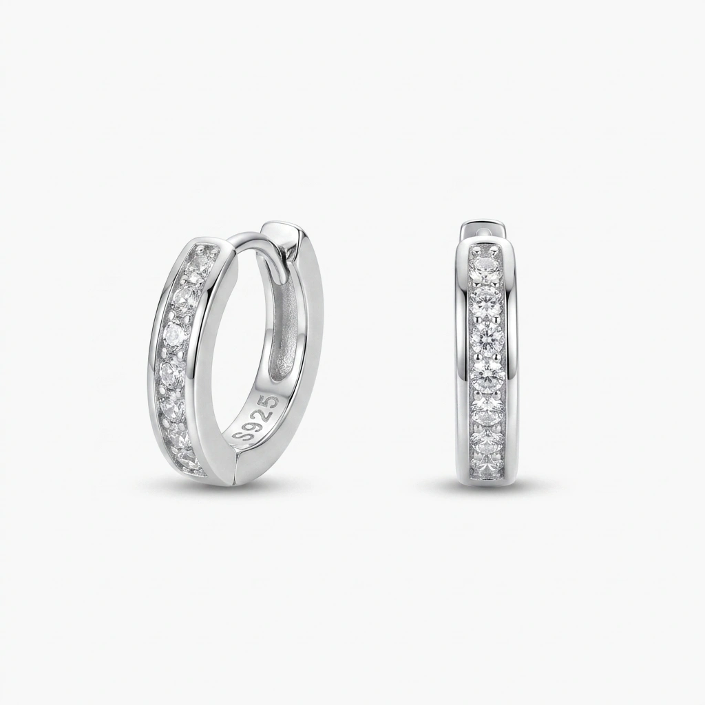 حلق فضة دائري (هووب) ناعم بقطر 8.5 ملي المفضل للأغلبية كلبس يومي. مرصع بفصوص الزركون الناعمة على الواجهة لإطلالة بسيطة ومرتبة.