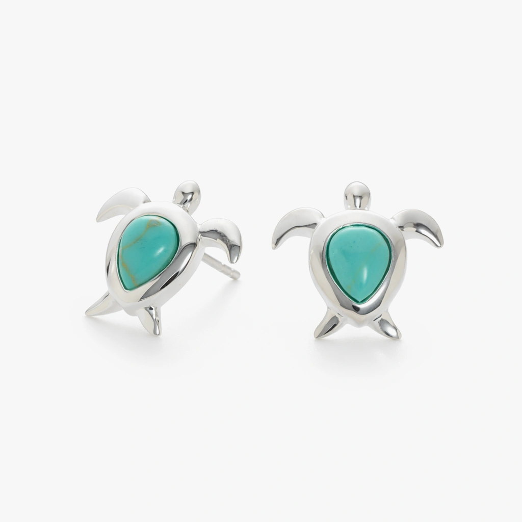زوج حلق فضة ستد سلحفاة (فيروز سنثتك)