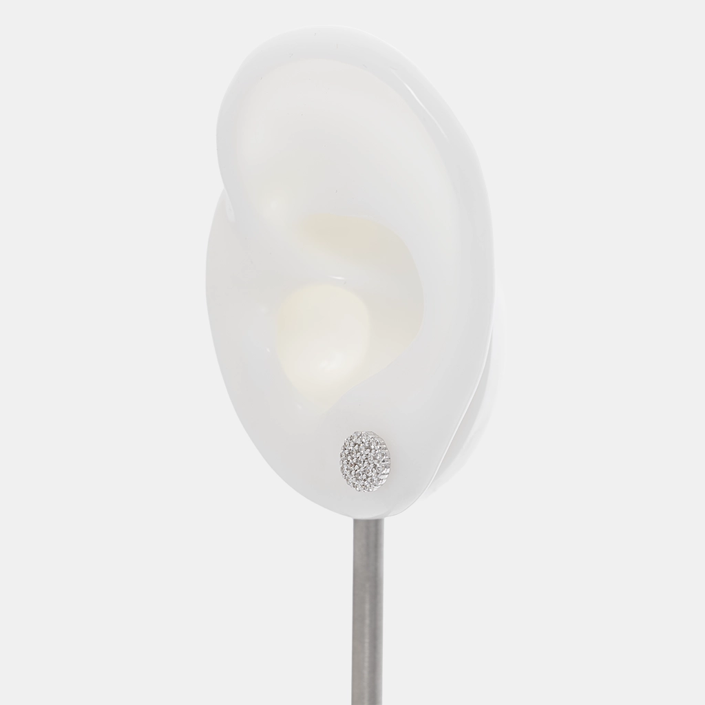 زوج حلق فضة ناعم ستد من فضة إسترلينية عيار 925 بموديل مودرن مقارب لموديلات الألماس، مرصع بزركون شفاف دائري بتكوين دائري مرصوف.