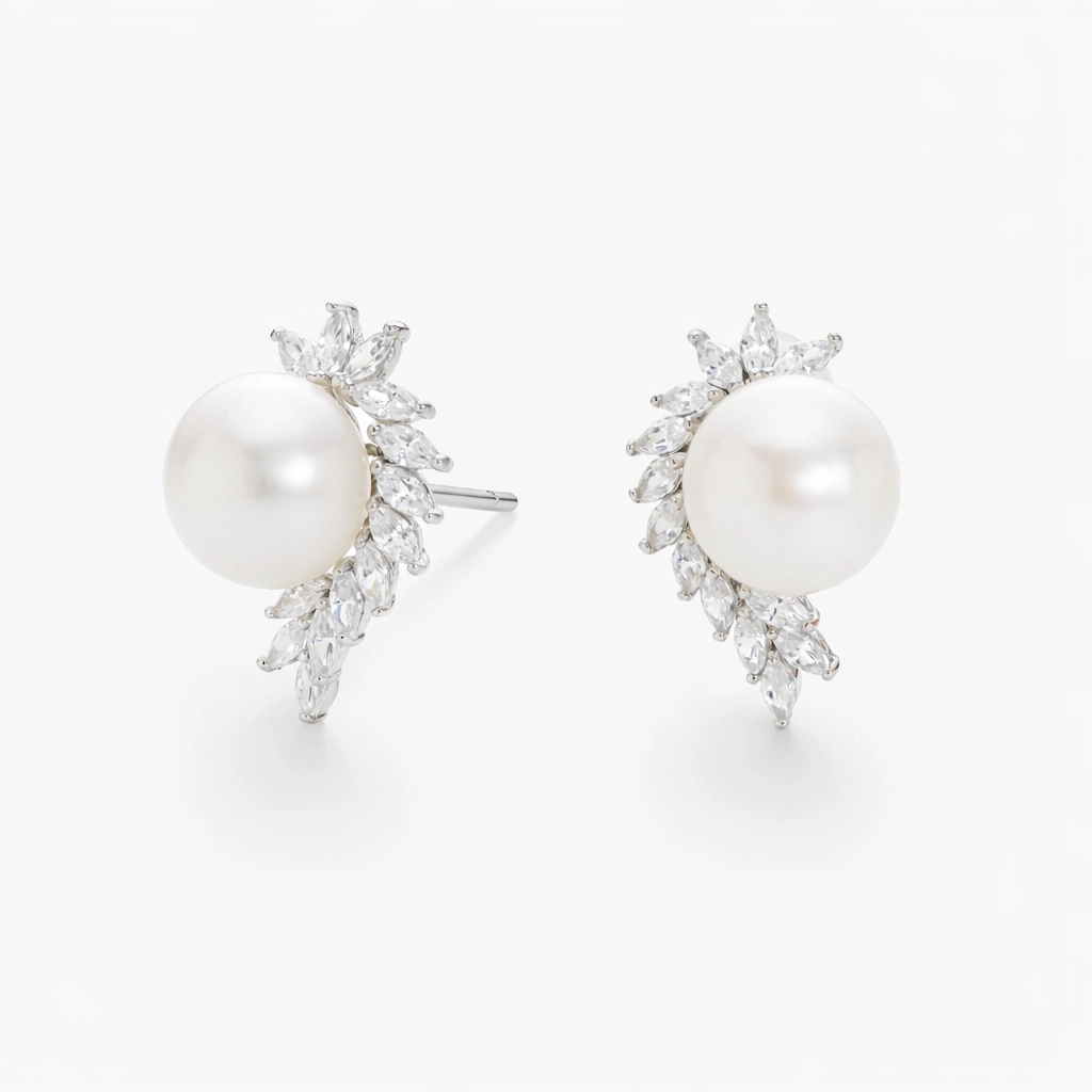 زوج حلق فضة لؤلؤ هالف هالو ماركيز