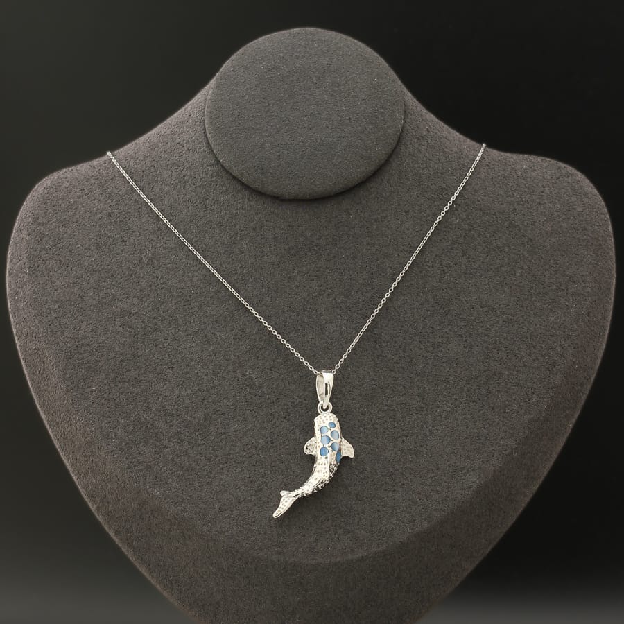سمكة مع صدف أزرق ، تعليقة وسلسال فضة