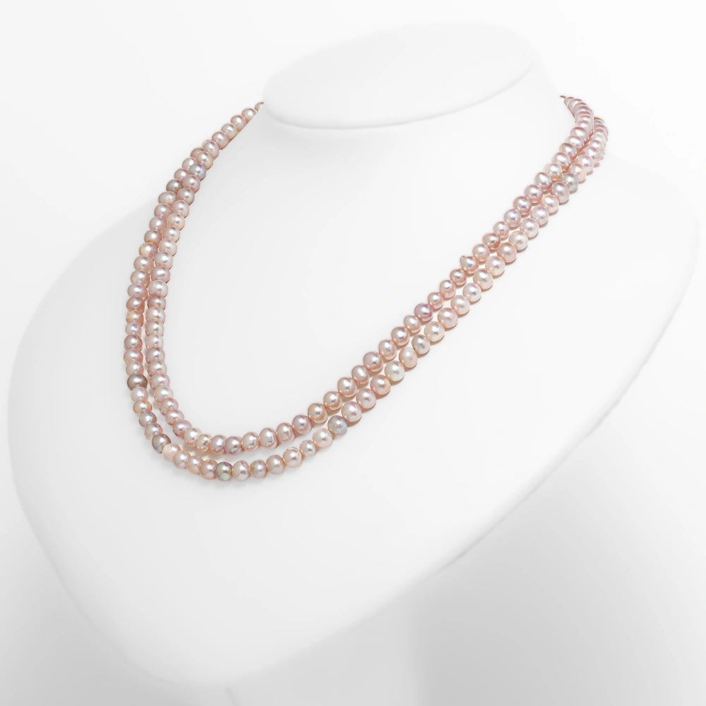 عقد لؤلؤ وردي صفين (5 ملي)