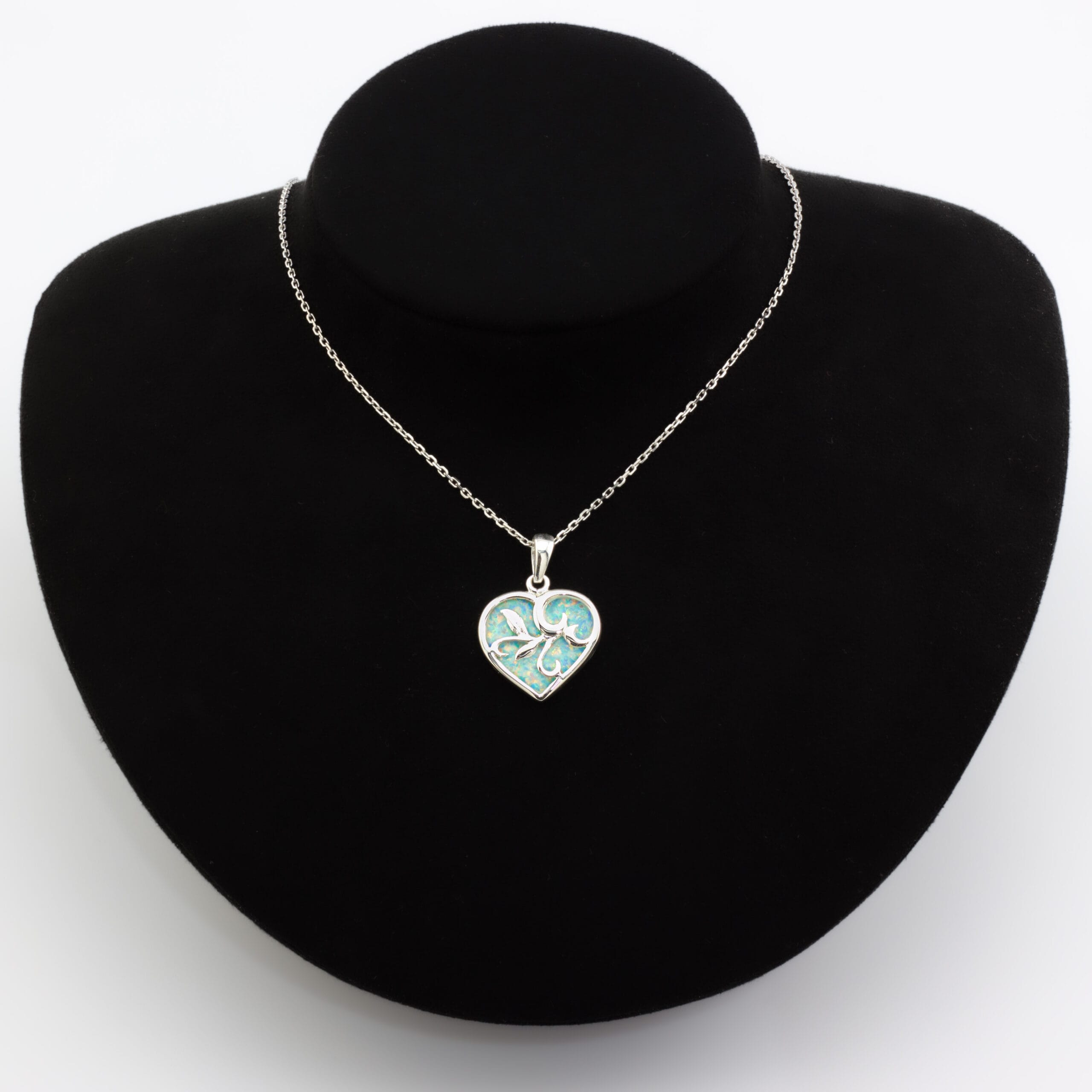 نقدم هذه القلادة بتصميم قلب مزخرف، مُصاغة من الفضة والأوبال الصناعي المتلألئ. تُعد هذه القطعة إضافة راقية تُضفي لمسة من الأناقة العصرية.