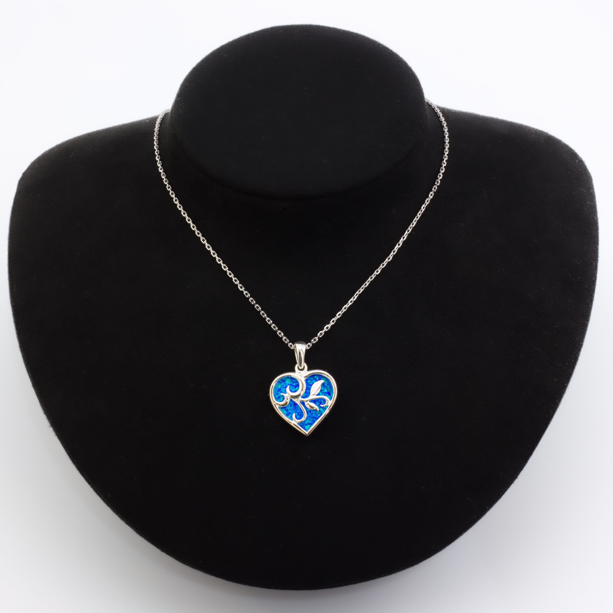 نقدم هذه القلادة بتصميم قلب مزخرف، مُصاغة من الفضة والأوبال الصناعي المتلألئ. تُعد هذه القطعة إضافة راقية تُضفي لمسة من الأناقة العصرية.