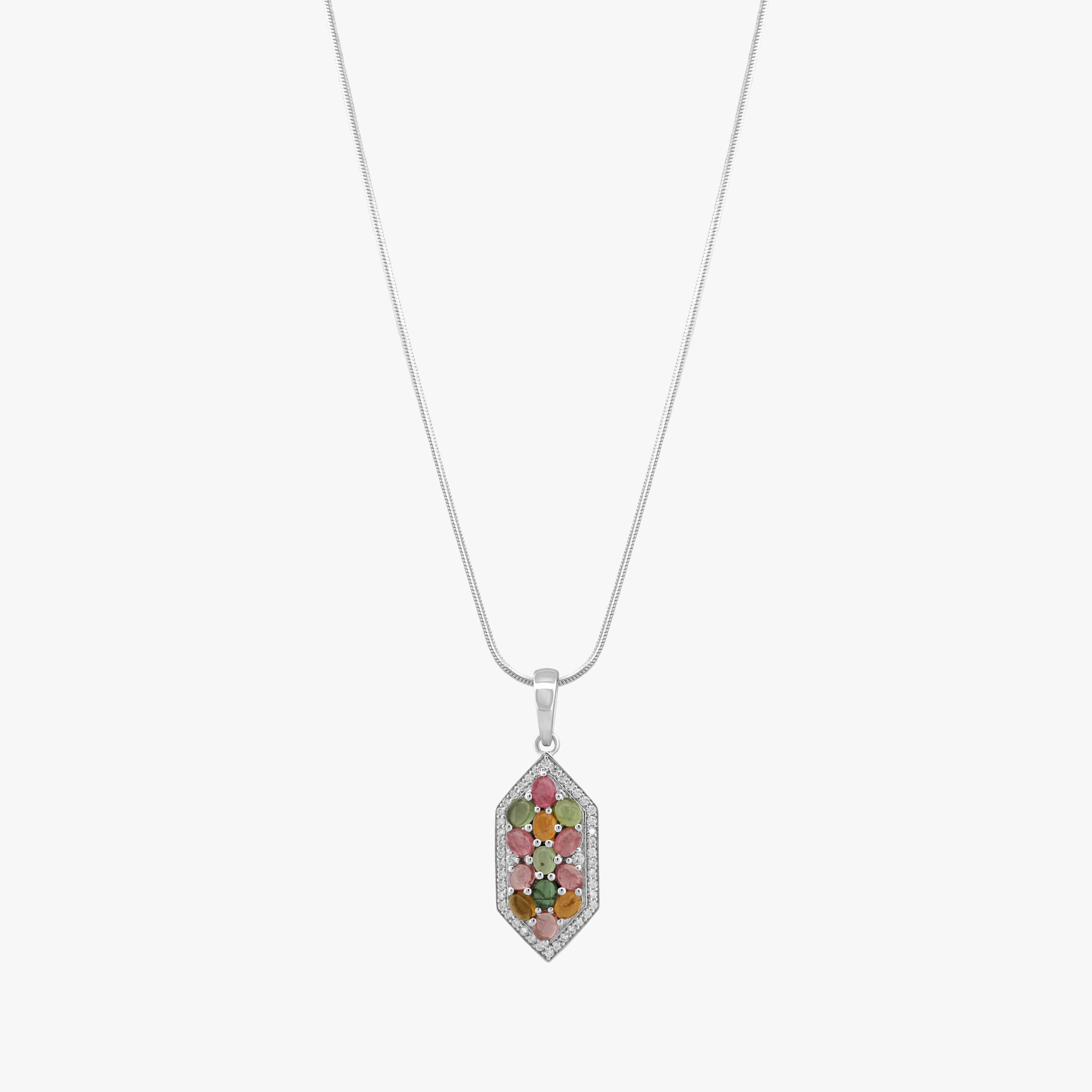 هكساجون تورمالين ، تعليقة وسلسال فضة