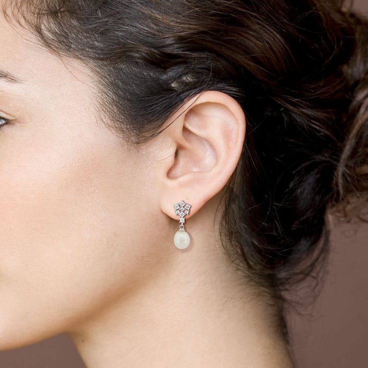 سي زي بنزلة لؤلؤ دمعة ، زوج حلق فضة
