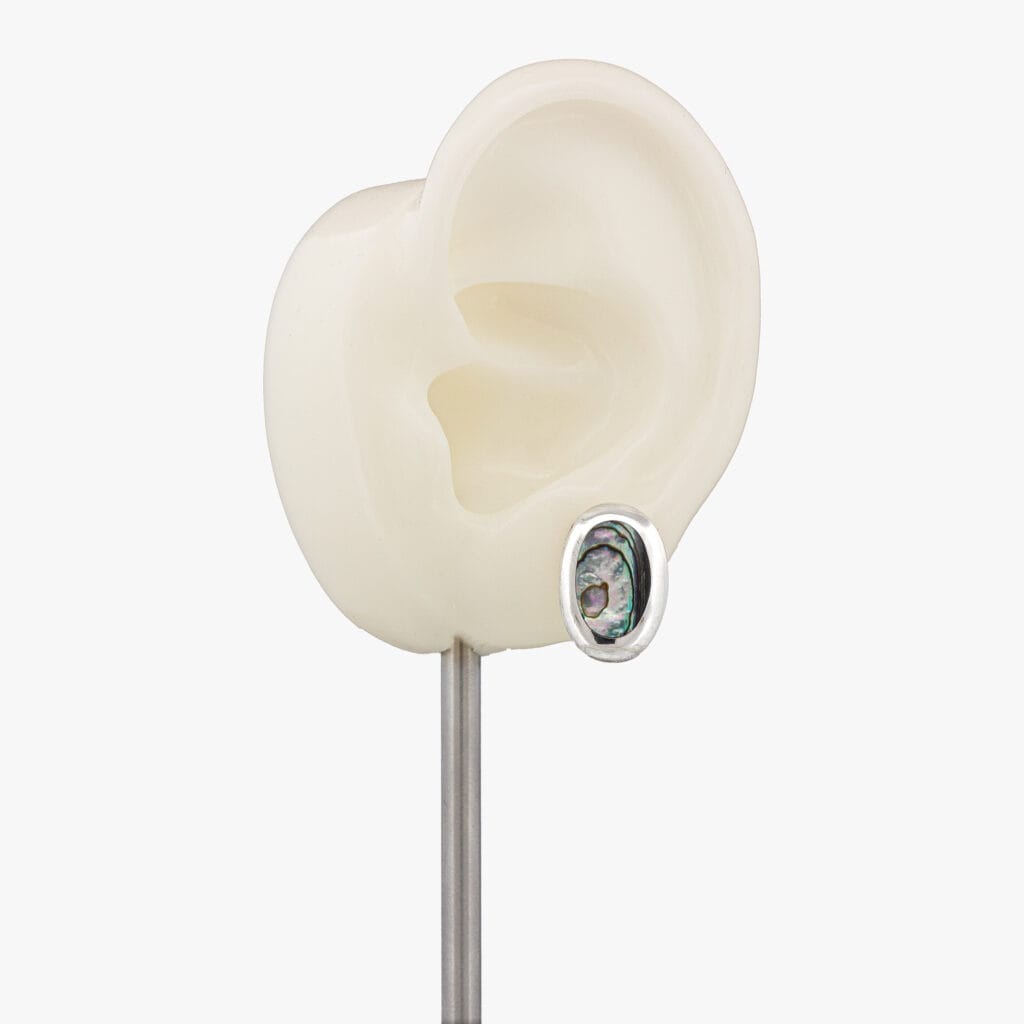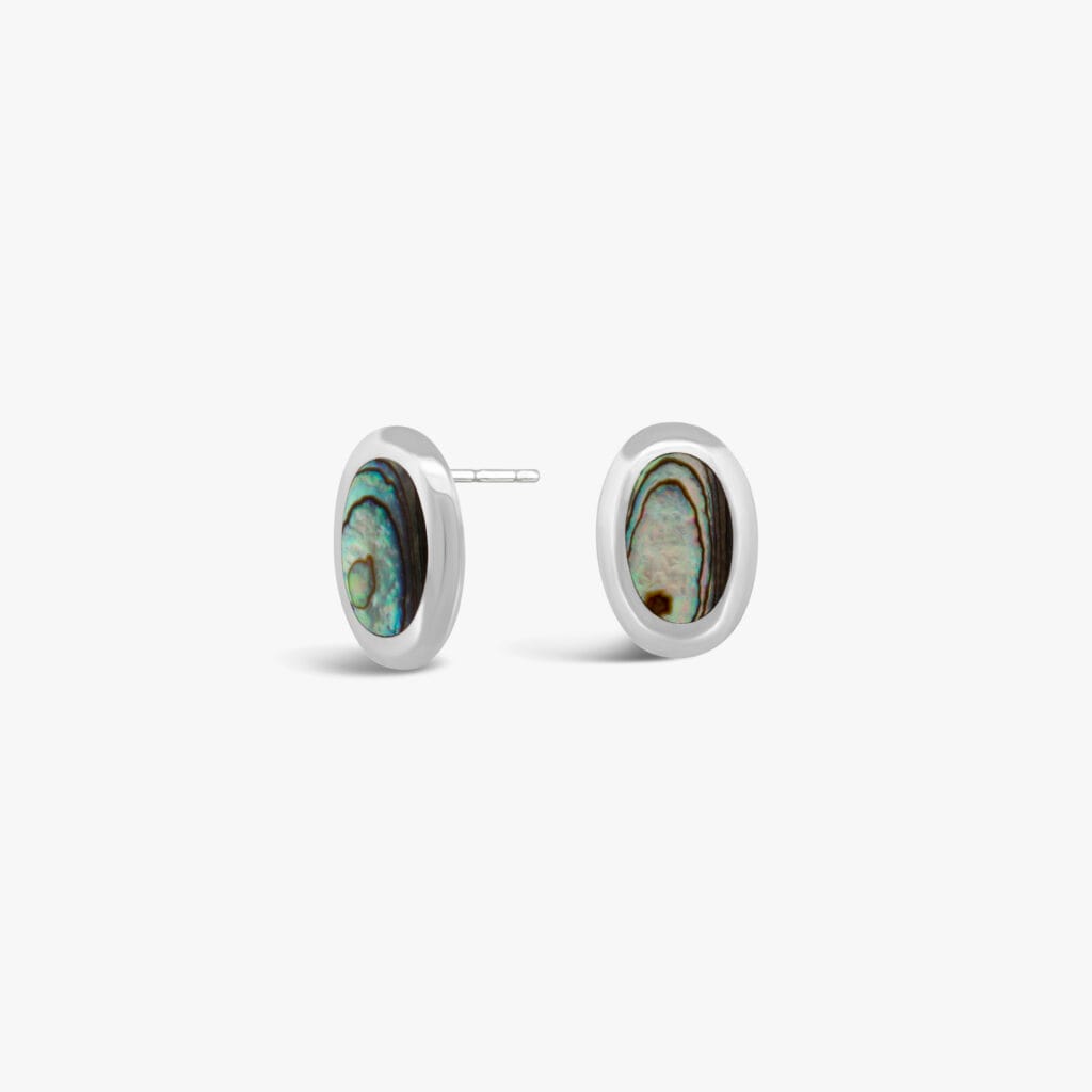 صدف أخضر بيضاوي ، زوج حلق فضة
