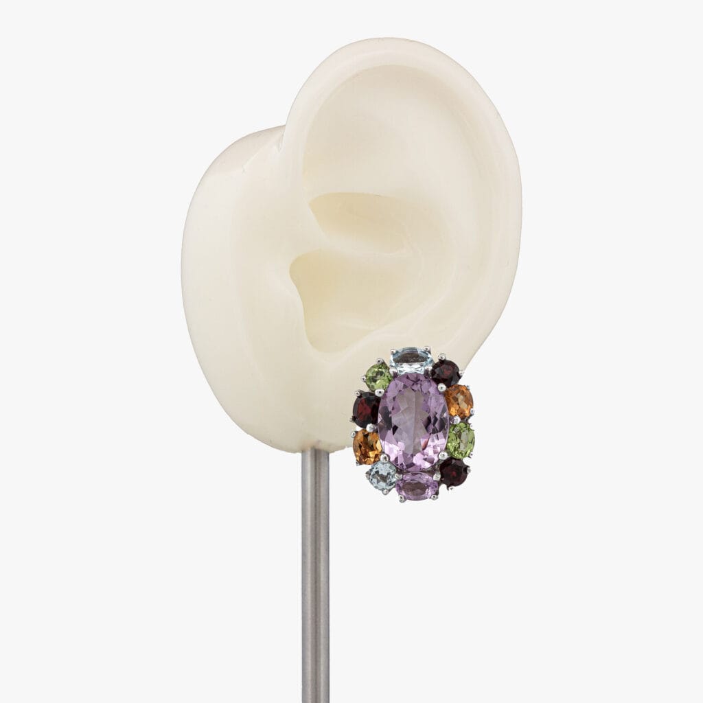 اماتيست مع كلستر أحجار كريمة ، زوج حلق فضة