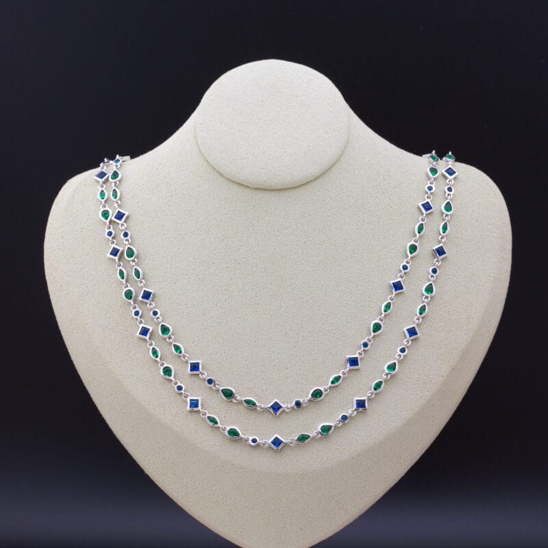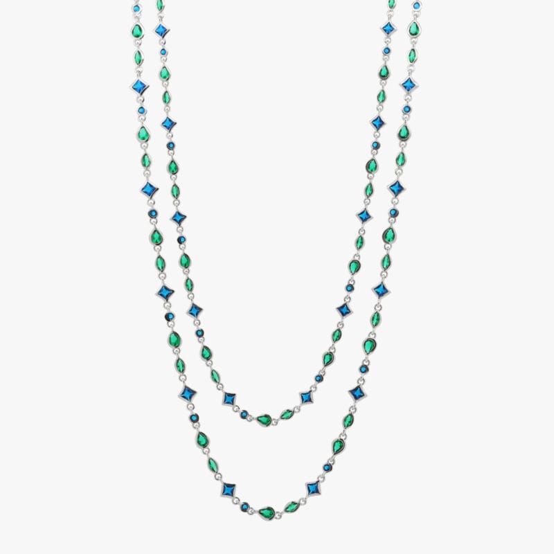 عقد طويل بألوان الأزرق والأخضر ، سلسال فضة