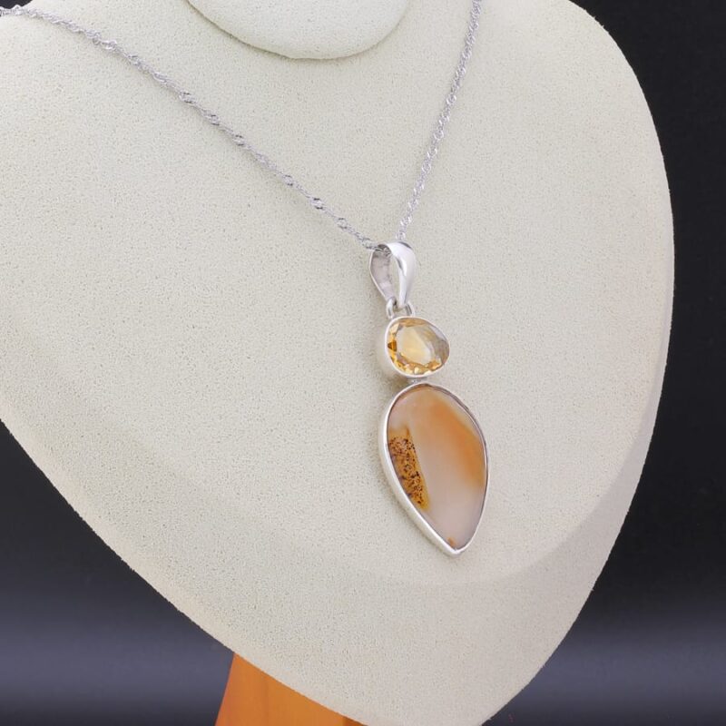 عقيق مونتاني وسترين ، تعليقة وسلسال فضة