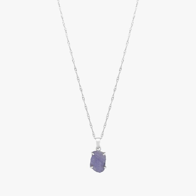 حجر التانزنايت (خام) ، تعليقة وسلسال فضة