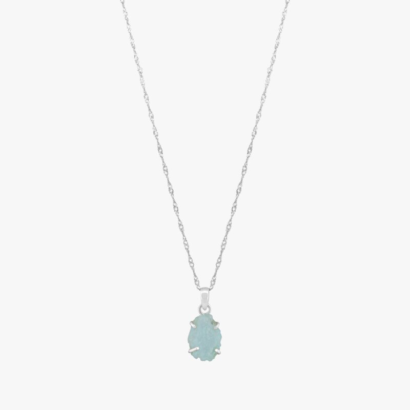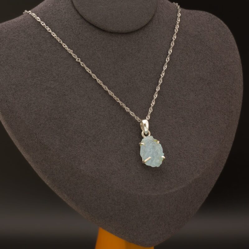 حجر الأكوامارين (خام) ، تعليقة وسلسال فضة
