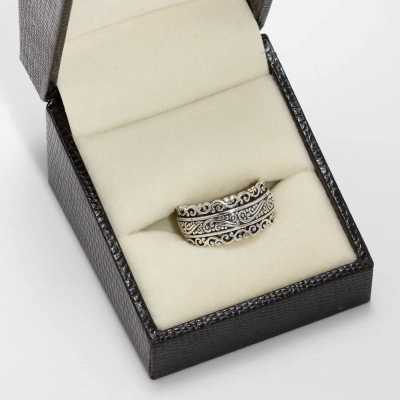 خاتم فضة الڤينتج بزخارف محفورة
