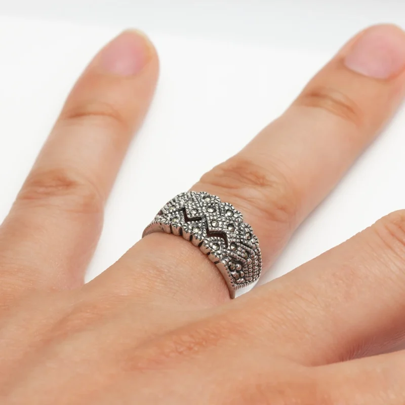 خاتم فضة ماركازيت ڤينتج نفش الزجزاج