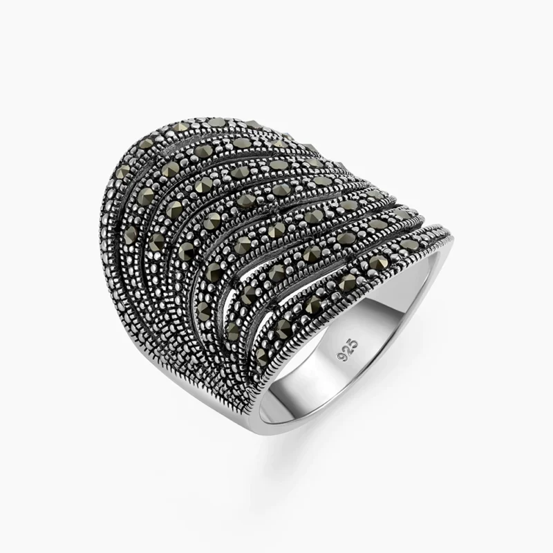 خاتم فضة ماركازيت بخطوط مقوسة متوازية